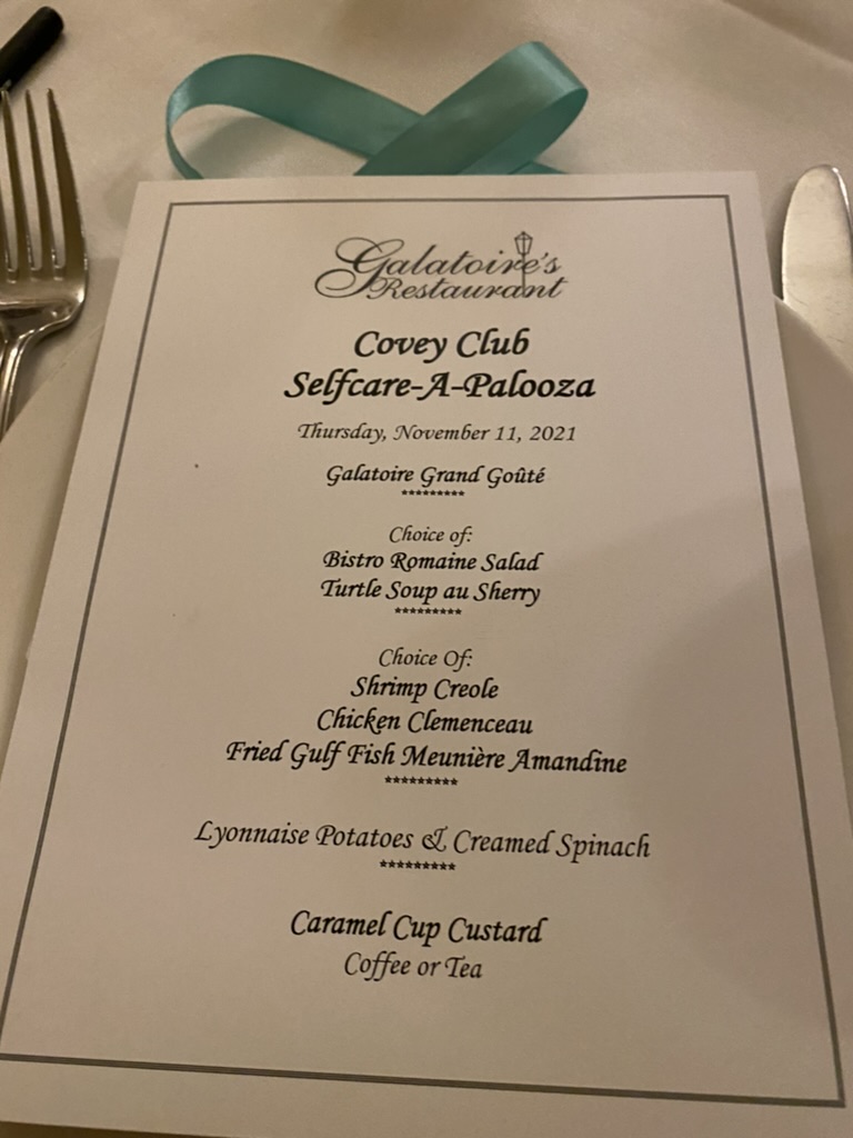 - CoveyClub Selfcare-A-Palooza menu at Galatoire’s